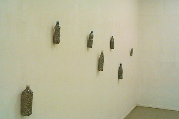 Parodoje „Litrožis“ A. Andriuškevičius pakviečia žiūrovą pasivaikščioti po begalę smulkiais skuteliais sukarpytų, supjaustytų popierinių skiaučių. Ši gausi smulkių skiautelių krūva padalyta į kelias grupes. Viena grupė, pati buitiškiausia, – tai galerijoje ant stalo sudėti, kaip mano tėvai vis dar sako, sloikai, arba, kaip jau sakau aš, stiklainiai, o šalia jų – stiklinis arbatos puodelis. Stiklainiai skirtingos talpos ir skirti skirtingiems tikslams (viename jų netgi galima pasigaminti skanaus lietuviškų obuolių vyno), tačiau visi jie užpildyti tomis skiautelėmis. Tarsi netvarkingai ir bet kaip. Nesudaroma jokia spalvinė prasmė, jokie ornamentai ir kiti saldūs bei gražūs motyvai. Ant pripildytų stiklainių viršaus uždėti geltonos spalvos stiklo gabalėliai, kurie sukuria įspūdį, jog stiklainiuose yra ne tik popieriaus skiautės, tačiau ir kažkoks glitus geltonas užpildas. Visa ši instaliacija pavadinta „Litarinatas. Lituo“. Instaliacija nuo stalo persikelia ant sienos, tačiau jau kiek kitokiu pavadinimu – „Literalinis, Litultys“. Vėlgi tomis pačiomis smulkiomis popieriaus skiautelėmis užpildyti buitiniai daiktai. Šį kartą – geriamojo vandens buteliukai. Menininkas neapsiriboja vienoda forma ir sukuria įspūdį, tarsi buvo paimta viskas, ką buvo galima rasti po ranka. Tiksliau, visi namie rasti tušti vandens buteliukai, be jokios kaprizingos atrankos. Šios dvi instaliacijos primena arte povera, arba kitaip – skurdžiojo meno kūrinius. Naudojamos greitai irstančios medžiagos bei yra naikinama tradicinė meno estetinė vertybė.