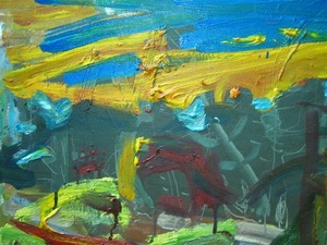 Arūnas tapo sode saulėlydžius. Rudeniškus -- nuo kadmio geltonumo iki atviros oranžinės. Keista, tema ekspresyvi, o paveiksluose jo ekspresija suvaldyta, net prislopinta.