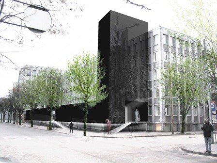 Horizontalus vieno aukšto tūris, kylantis aukštyn A.Mickevičiaus gatvės link. Forma, kontrastuojanti su esamu pastatu. Priestatas traktuojamas kaip kampinė vertikali dominantė, pabrėžianti kampą. Aukštis toks pat, kaip esamo pastato. Priestatas blokuojamas prie esamo tūrio. Horizontalus tūris pakeltas per pusaukštį.