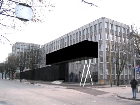 Projektuojamas tūris visuose pasiūlymuose pusaukščiu pakeltas virš grindinio. Visuose pasiūlymuose naujas tūris priešpastatomas kietai A.Sprindžio projektuoto administracinio pastato kompozicijai.