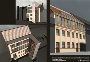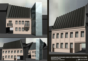 Manau, kad galima buvusį pastatą dalyti, vieną dalį aukštinti. Pirmame variante labai skiriasi gatvės ir kiemo architektūra. Laiptinė galėtų būti ilgesnė, siauresnė ir žemesnė ar laiptuota. Laiptinės stiklas nepriimtinas dėl šalia esančių butų langų.