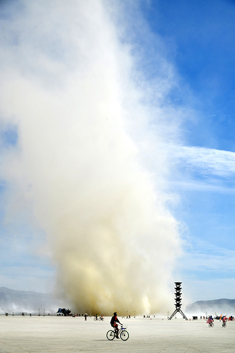 Tiesa, fotografas pabrėžia, jog festivalis „Degantis žmogus“, kuriuo siekiama savaitei sukurti utopinę visuomenę, kokios realybėje negali būti ir niekada nebus, pirmiausia yra įvairių šiuolaikinių kūrybinių projektų vieta: „Galbūt, čia susilieja pragaras ir rojus, nuodėmė ir šventumas. Kuomet šeštadienį deginama pagrindinė festivalio skulptūra, 70000 dalyvių džiaugiasi, glėbesčiuojasi, šaukia, šoka, važinėja garso kolonėlėmis pakrauti meno automobiliai artcarai, o kitą dieną, sekmadienį, kuomet deginama šentykla, tie patys 70000 žmonių verkia, tyli, negirdėti nė garso, kol visa šventovė nesudega, nesukrenta.“