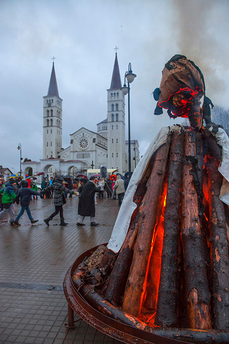 Anot pašnekovo, Užgavėnių tradicijų esmė panaši – vyksta kova tarp žiemos, Lašininio, ir pavasario, Kanapinio, kurios metu žiema nugalima, o tuomet ateina pavasaris, šviesa, šiluma, gyvybė. Ši šventė vargiai įsivaizduojama ir be Morės deginimo, persirengėlių, velnių, kaukių. „Vienas Užgavėnių motyvų Žemaitijoje yra blukio, seno kelmo, turinčio ryšį su žeme, gyvatėmis ir blogybėmis, vilkimas per kaimą, kuomet galiausiai jis išvelkamas ir sudeginamas.“ Fotografas prisimena, jog vienas lietuvių projektų, įgyvendintų „Degančio žmogaus“ festivalio metu 2011-aisiais, būtent, ir buvo didžiulio blukio vilkimas per dykumą, per visą festivalio erdvę. Kitais, 2012-ais metais, jame buvo pastatyta blukį vaizduojanti skulptūra, kuri galiausiai buvo sudeginta. „Lietuviai yra labai žinomi, turbūt, labiausiai ir išgarsėję šiuo projektu, nes pats Užgavėnių, kartu ir blukio, simbolis iš esmės atitinka „Degančio žmogaus“ simboliką – skulptūros, ugnis, persirengėliai, bylojantys apie atsimainymą, nuodėmių, nesėkmių, kitų blogybių sudeginimą.“
