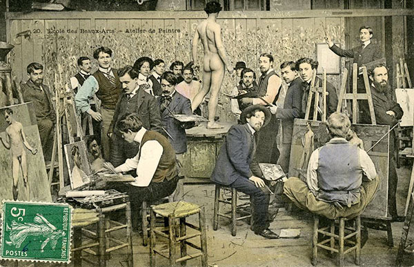 National School of Fine Arts painting studio. Late 19th century. Postcard
