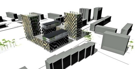 Planuojamame sklype numatoma statyti ne aukštesnius nei 50 metrų pastatus, išlaikant normatyvinį užstatymo tankį ir intensyvumą. Teritorijoje planuojami du pastatai. Pastato planinė ir tūrinė formos išskaidomos į tris atskirus tūrius, kurių aukštingumas skirtingas (vienas iš tūrių - 16 aukštų, antras - 4-5 aukštų, trečias – 7-8 aukštų). Pastatų planinė ir tūrinė formos yra identiškos.