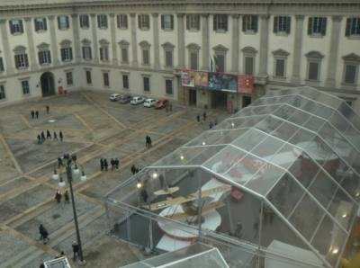 Katedros aikštė prie Pallazo Reale. Novečento muziejaus paviljonas užstoja įėjimą į M. K. Čiurlionio parodą. R. Andriušytės nuotr.