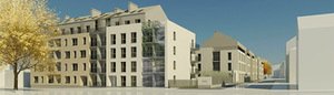 Projektuojam tik 2-5 kambarių butus su balkonais. Viršutiniai butai turi tersasas ant stogo. Įėjimai būdingi šitai aplinkai. Aukštutinė pastatų dalis prigesinta – atitraukta nuo gatvės, antrame plane.